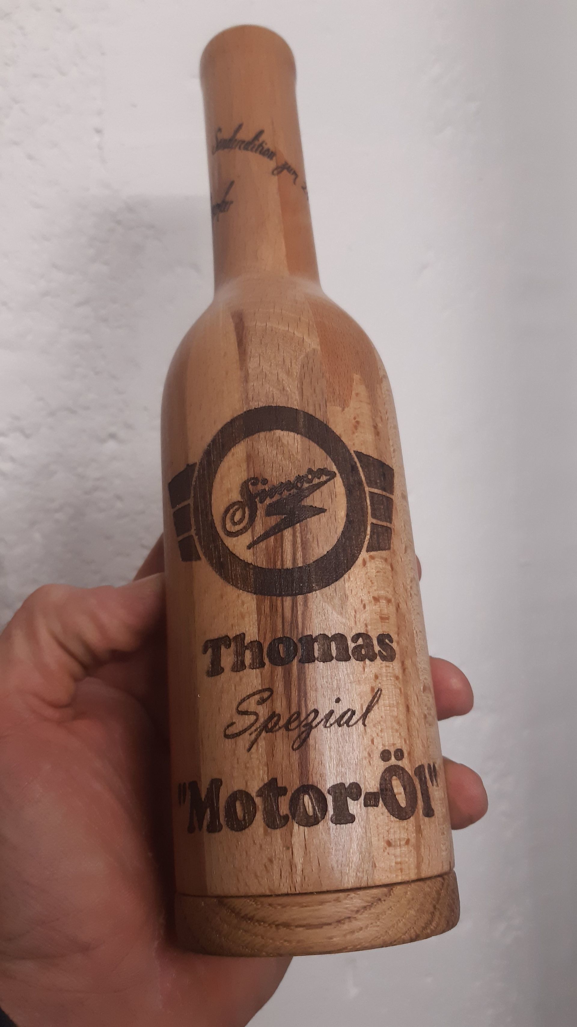 Die Holzflasche ist ein Geschenk, individuell, personalisierbar und einzigartig.